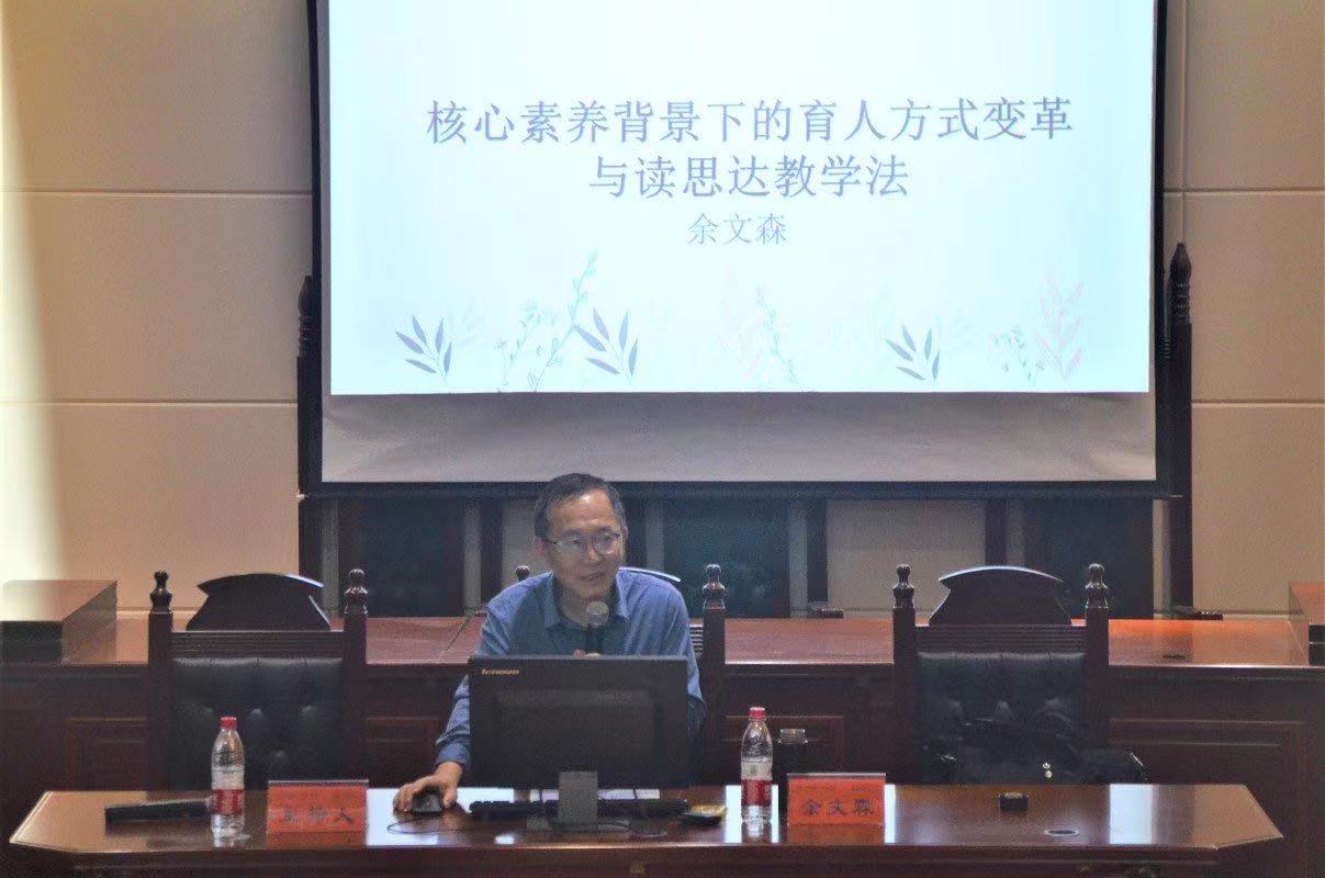 对于如何让学生形成核心素养,让核心素养真正落地,余教授从五个方面阐述了使其落地的读思达教学法:一是读思达是一个完整的学习过程,是知识内化和转化为核心素养的主路径;二是读思达活动是学生的主活动;三是阅读力、思考力、表达力是学生学习的主能力;四是读思达是学业成绩的主力量,也是隐性的决定力量;五、读思达是学生学习存在的主要问题,即当前许多学生都存在“读而不懂、思而不深、达而不准”的问题。