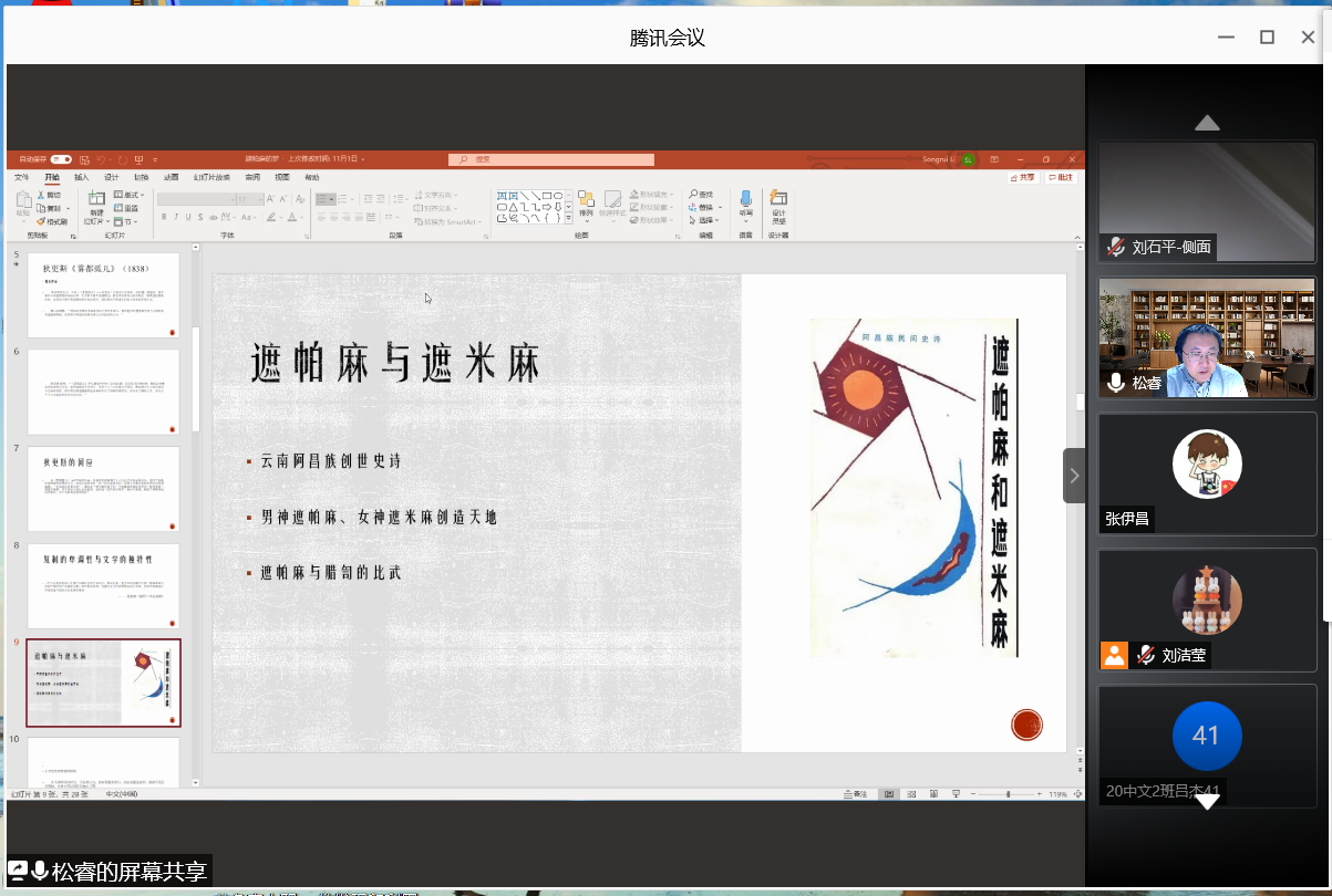 11月24日晚,我院特邀中国艺术研究院研究员李松睿在线上为我院师生做主题为“遮帕麻的梦:重释现实主义文学的‘真实’”的学术讲座。讲座由党总支书记佘向军主持,我院师生360余人聆听了本次讲座。