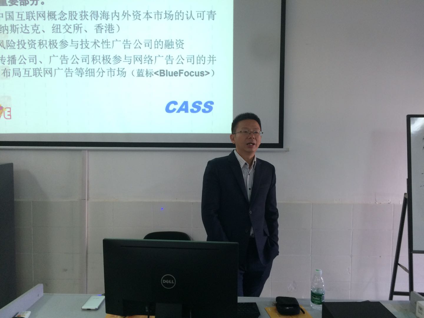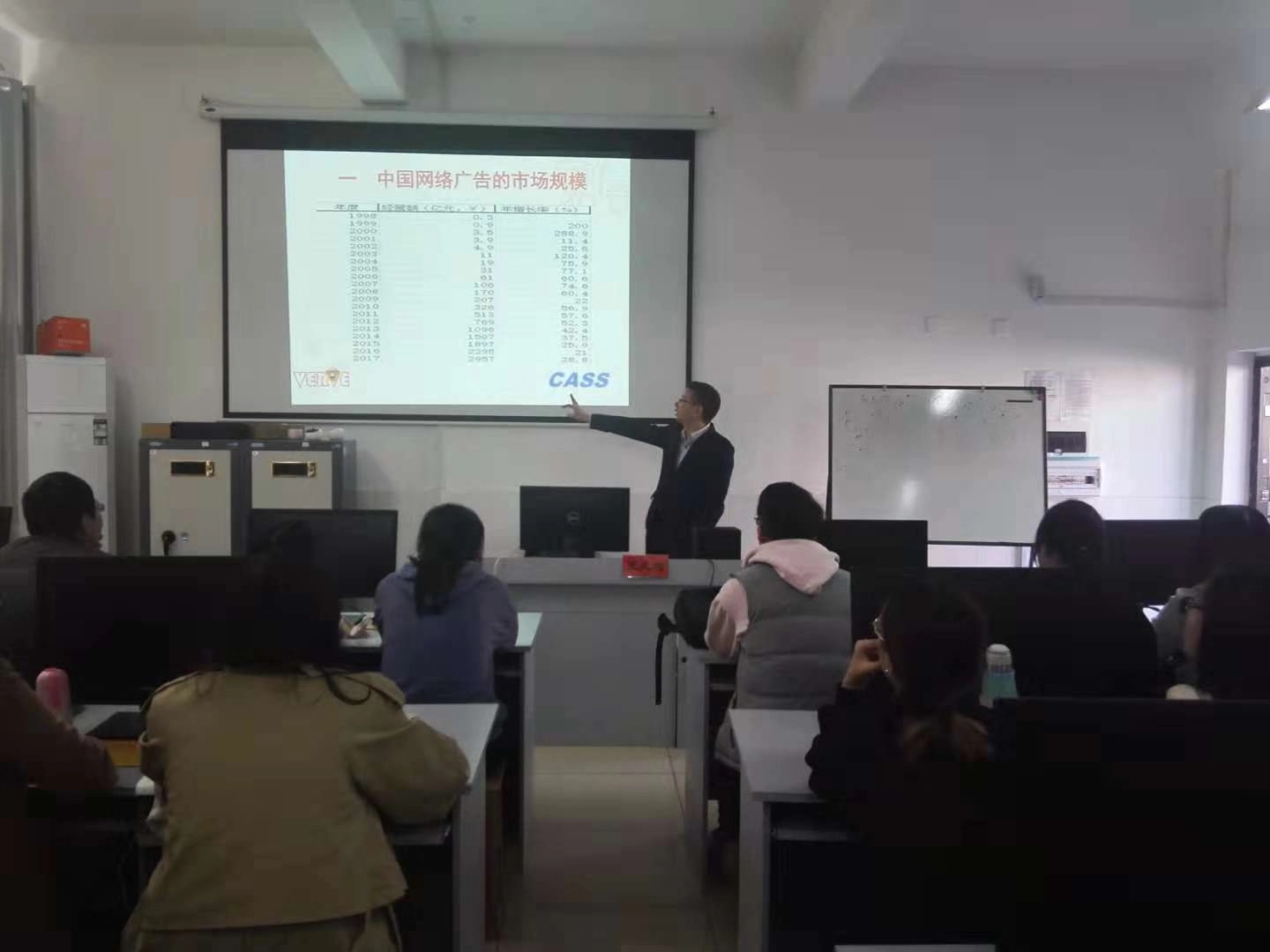 11月23日下午,中国社会科学院新闻与传播研究所副研究员王凤翔博士在润寰南301做了题为"中国网络广告的发展特点与全球视野"的专题讲座。AV中文字幕在线观看副院长龙永干教授主持讲座,广播电视学及网络与新媒体专业部分师生到场聆听。