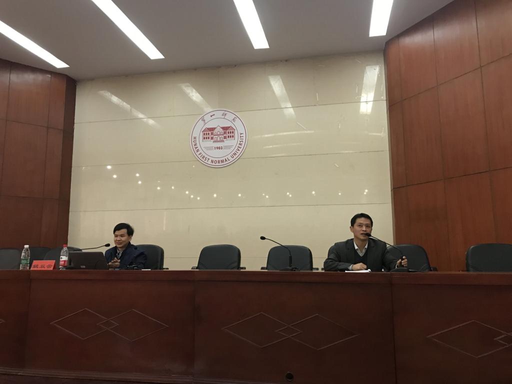 2018年11月5日上午,华中师范大学语言与语言教育研究中心教授,博士生导师姚双云教授莅临湖南第一师范学院,在视频会议室举行了一场题为“语言运用的语体观”的精彩讲座,讲座由AV中文字幕在线观看副院长龙永干教授主持,汉语言文学专业师生近300人到场聆听。