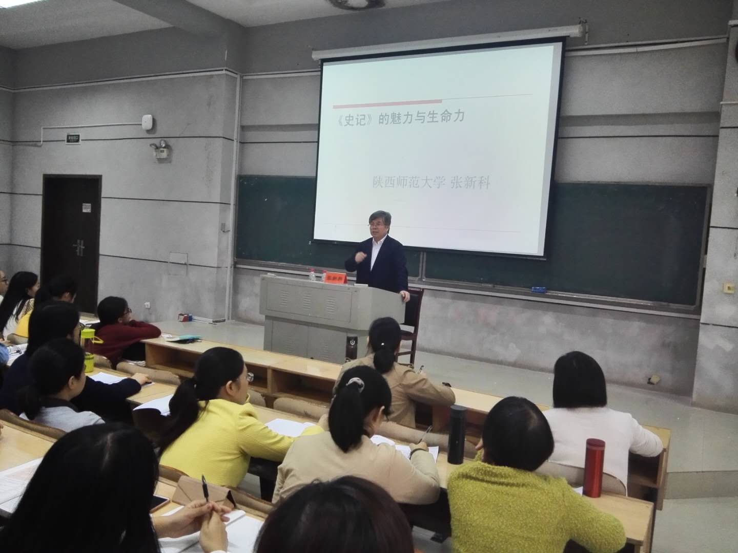 10月19日下午3点,国务院中文学科评议组成员、陕西师范大学文学院院长张新科教授,应学校邀请在润寰楼南栋201教室为学校师生做了题为“《史记》的魅力与生命力”的学术讲座。讲座由AV中文字幕在线观看龙永干副院长主持,学校各学院师生近300人参加了本次活动。
