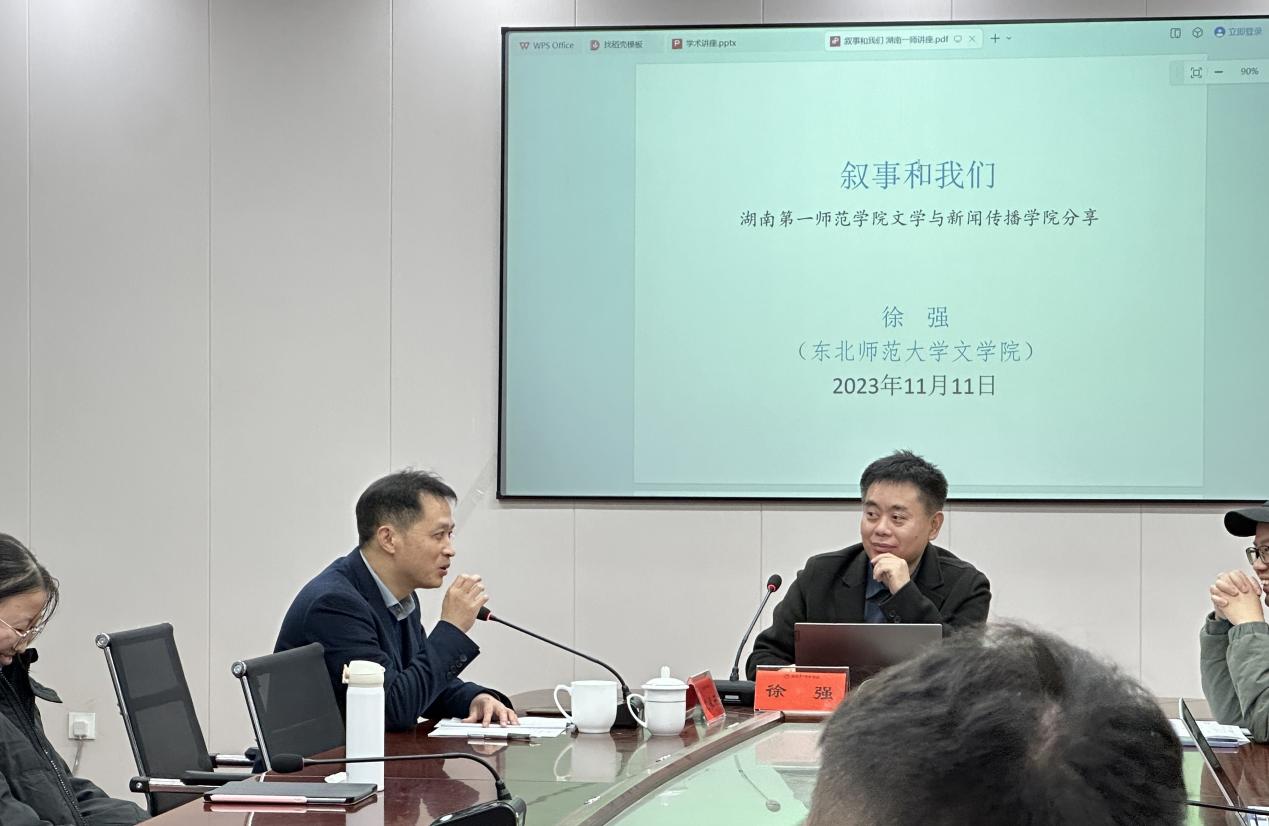 11月11日晚,东北师范大学博士生导师徐强教授应邀为我院师生开展题为“叙事和我们”专题讲座。讲座由院长龙永干教授主持,副院长杨水远及近百名师生参加讲座。