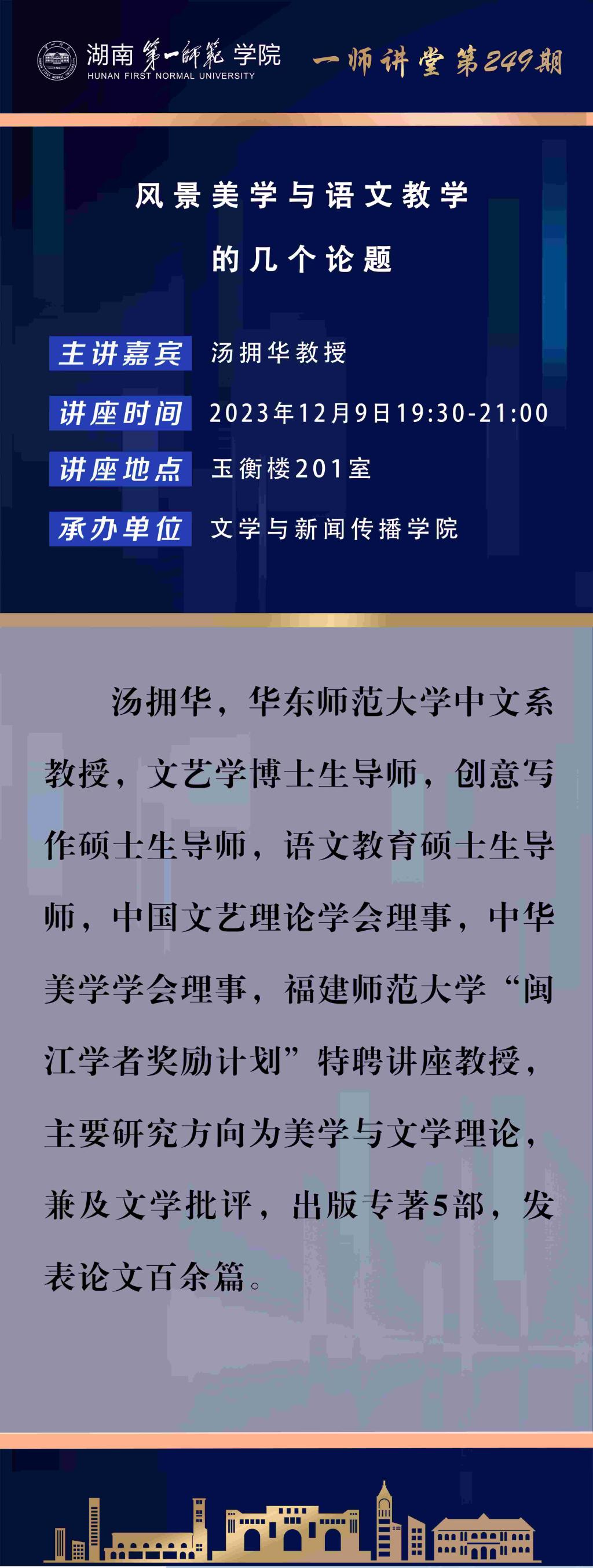 一师讲堂第249期:风景美学与语文教学的几个论题