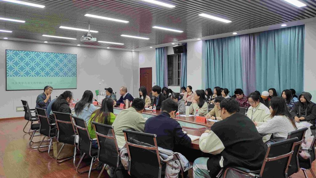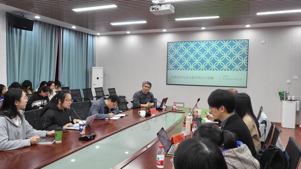 12月9日,我院特邀华东师范大学中文系副主任、博士生导师汤拥华教授来院作题为“风景美学与语文教学的几个论题”的学术讲座。讲座由院长龙永干教授主持,副院长杨水远、湖南师范大学文艺学教研室副教授王健老师及80余名师生参加讲座。