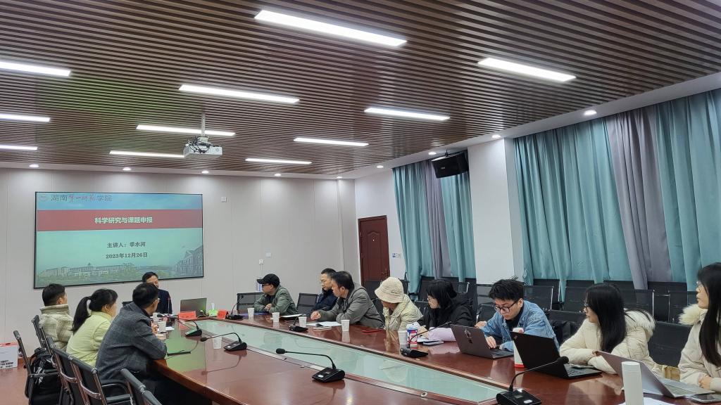 2023年12月26日晚,湘潭大学文学与新闻学院二级教授、博士生导师季水河应邀为我院教师开展题为“科学研究与课题申报”的学术讲座。讲座由副院长杨水远主持,我院教师20余人参加学术讲座。