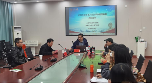 2024年1月6日下午,中国人民大学教授,博士生导师朱冠明应邀来我院与青年教师开展学术座谈。座谈由院长龙永干教授主持,湘潭大学雷励教授、杨水远副院长及汉语国际教育系教师参与此次座谈。
