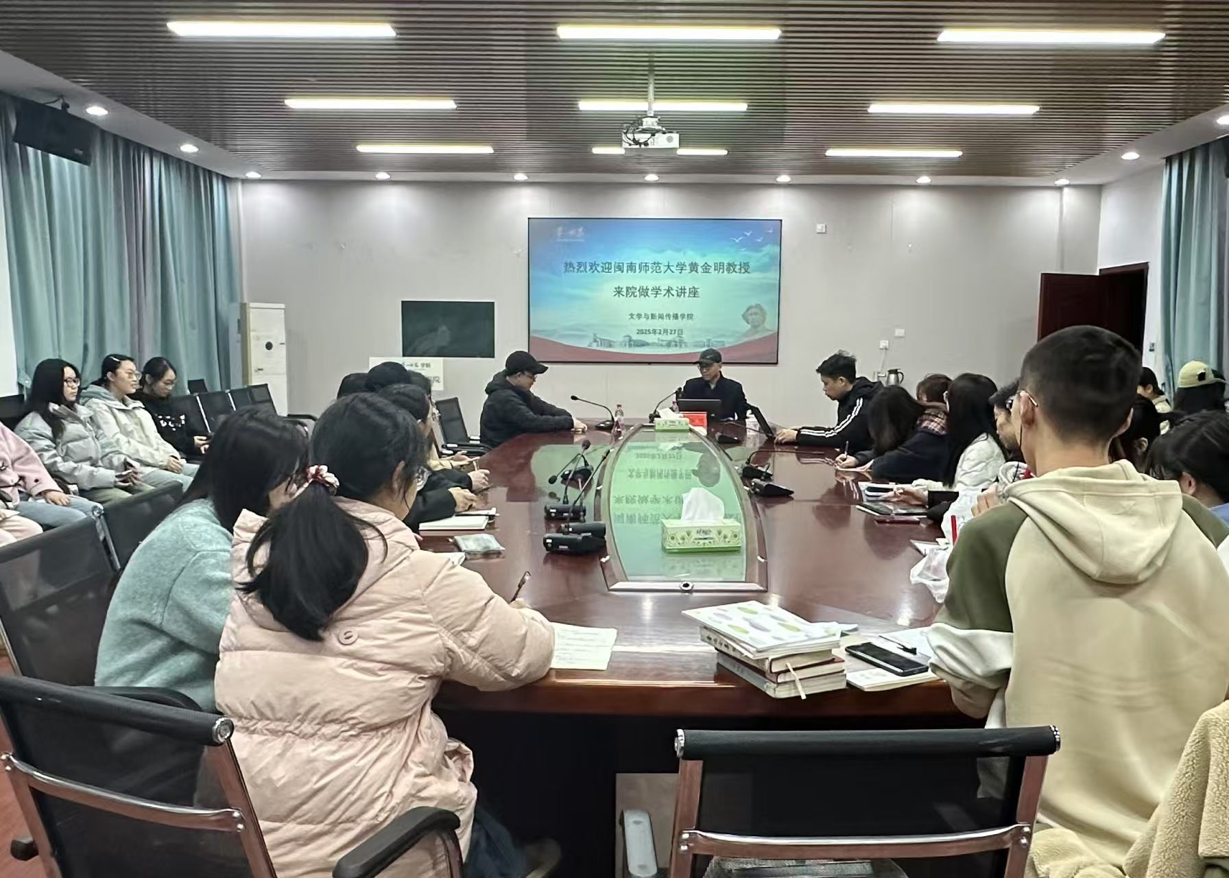 2月27日晚,闽南师范大学黄金明教授应邀至我校AV中文字幕在线观看,开展《文心雕龙》文之枢纽的重新阐释学术讲座,副院长杨水远与22级润之英才班、22中文4班全体学生共同参与此次讲座。