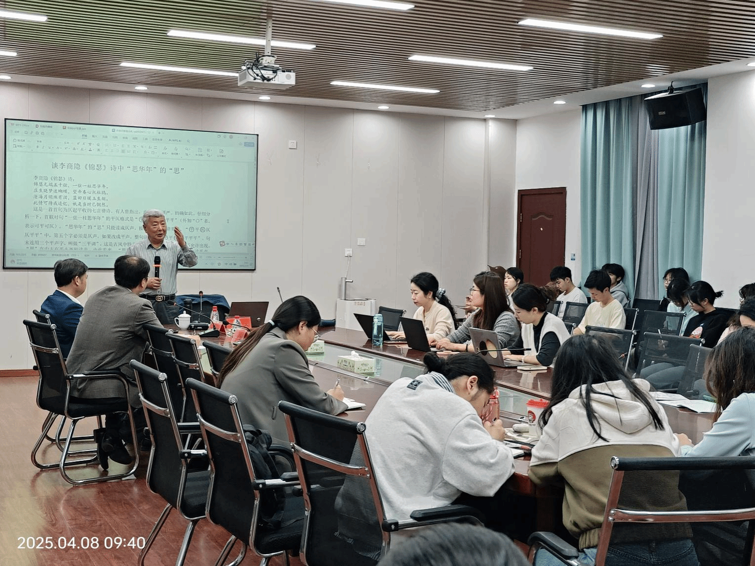 2025年4月8日星期二,北京大学中文系博士研究生导师孙玉文教授应邀来我院开展以“从语音匹配的角度试释几首常见古诗的若干语句”为主题的讲座。讲座由我院党委书记刘立勇主持,汉语国际教育教师及23级汉语言文学专业、汉语国际教育专业学生参加讲座。