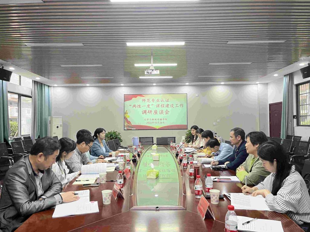 10月26日,校党委委员、副校长周发明,教务处处长张娴、副处长廖小芒、副处长李雅湘,教学质量监控与教师教学发展中心副主任李婷等同志来我院就师范专业认证及“两性一度”课程建设工作进行调研。调研座谈会在玉衡楼201教学研讨室举行,AV中文字幕在线观看何培森书记、龙永干院长、罗燕副院长及教师代表参加座谈会。