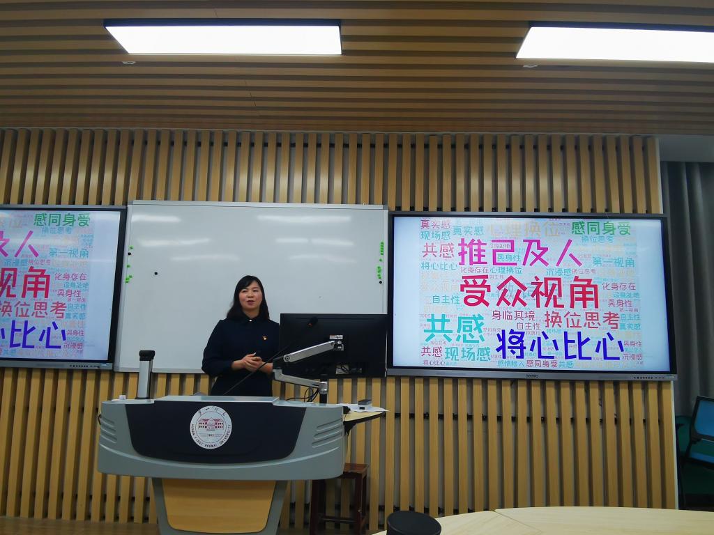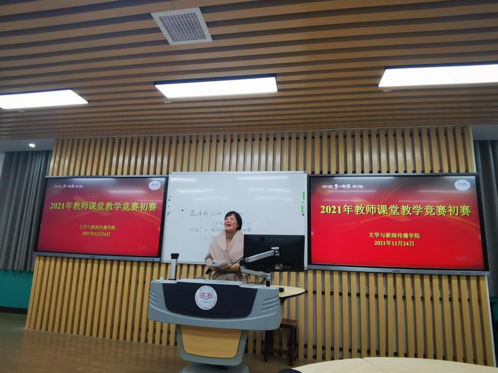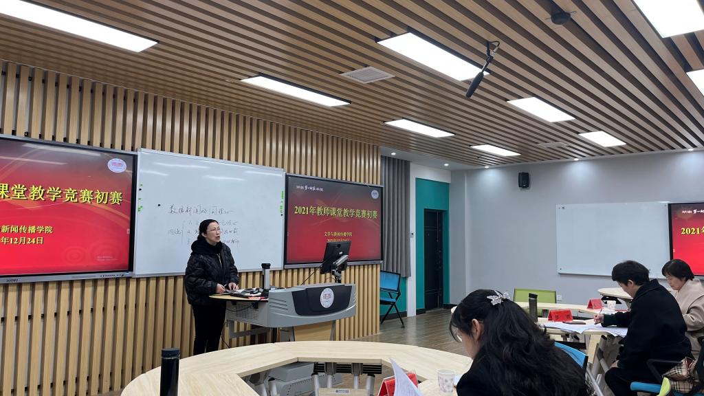 AV中文字幕在线观看教师课堂教学竞赛初赛于12月24日下午14:00在特立北102智慧教室进行,孙雅平、刘君君、赵姣、刘晓云、谢亚可共5位青年教师参加,毛丽老师、王霞老师、罗燕老师担任评委,邵馨颖老师担任点评专家,文传院全体教师参与了活动。
