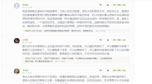待资源库建立之后,我开始正式进入编辑页面,准备预备周的学习计划。我一共分两章安排计划,第一章里首先设置了“学习须知”和“考核计划”,让学生在正式学习之前快速了解课程,明白自己在课程中会学习哪些知识,把握课程学习与考核方式的关系。接下来我在两章里分别安排了文献阅读和艺术作品推荐,围绕“美育”的基本认知常识对学生进行预备周的学习引导,并设计主题讨论,鼓励学生积极思考,分享学习心得。从讨论区反馈的信息来看,不同班级的学习兴趣与热情有较明显的差异,不同学生的学习态度、认知水平与表达能力也存在差别,这对于我接下来的教学工作有一定的指导意义。