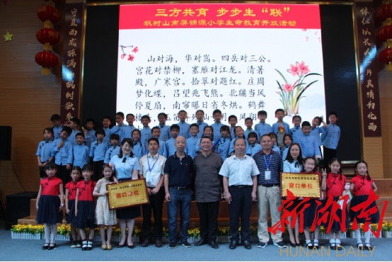 新湖南客户端529日讯 今天,在湖南省社会科学联合会和长沙市雨花区教育局指导支持下,第一师范学院对联基地在长沙枫树山南屏锦源小学召开“全省联教窗口单位观摩交流会”。