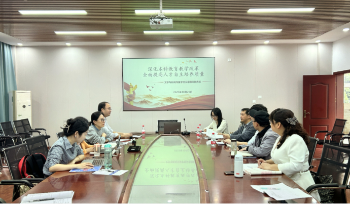 为深化本科教育教学改革,全面提高人才自主培养质量,10月25日上午,我院汉语国际教育系召开本科教育教学改革专题学习会,活动由系主任王正主持,全体教研室成员参加,院长龙永干、副院长杨清华、杨水远出席活动。