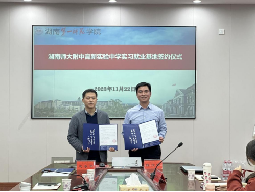 交流指导结束后,我院与湖南师大附中高新实验中学签订实习就业基地协议。陈文锋书记一再鼓励全体师生要不断学习和探索,要具备探索精神,适应时代,学会创新。他希望在座全体同学能够积极投身教育事业,为我国教育事业的成长和未来做出更多的贡献。