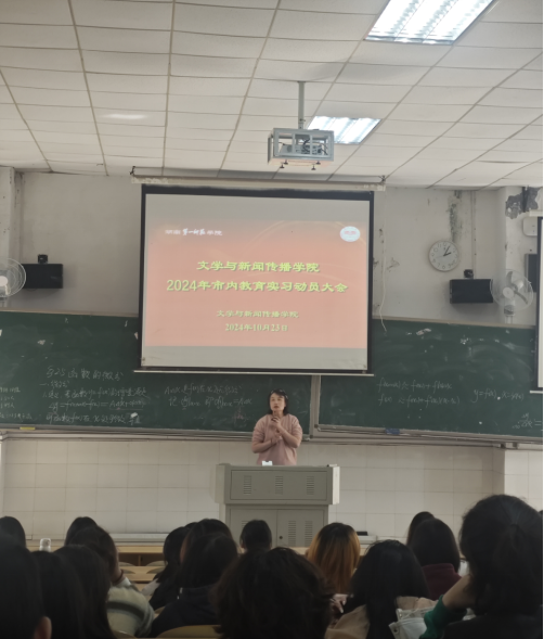 10月24日下午2点半, AV中文字幕在线观看2022级汉语言文学专业公费定向师范生市内教育实习动员大会在玉衡南201教室举行, 会议由院教科办陈慧老师主持,2022级汉语言文学专业公费定向师范生、全体教育实习带队老师参加了本次动员大会。