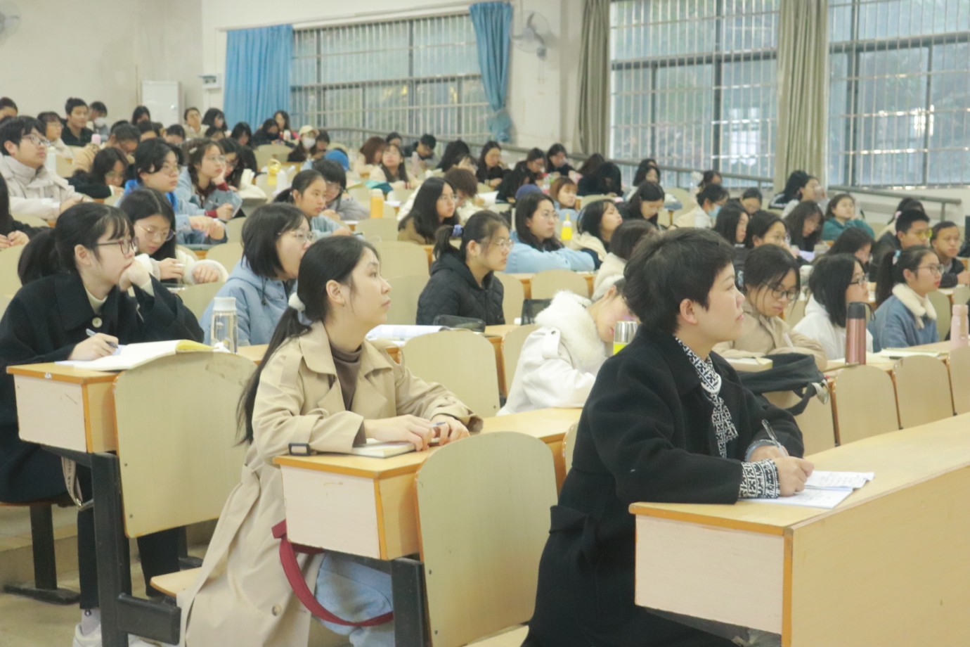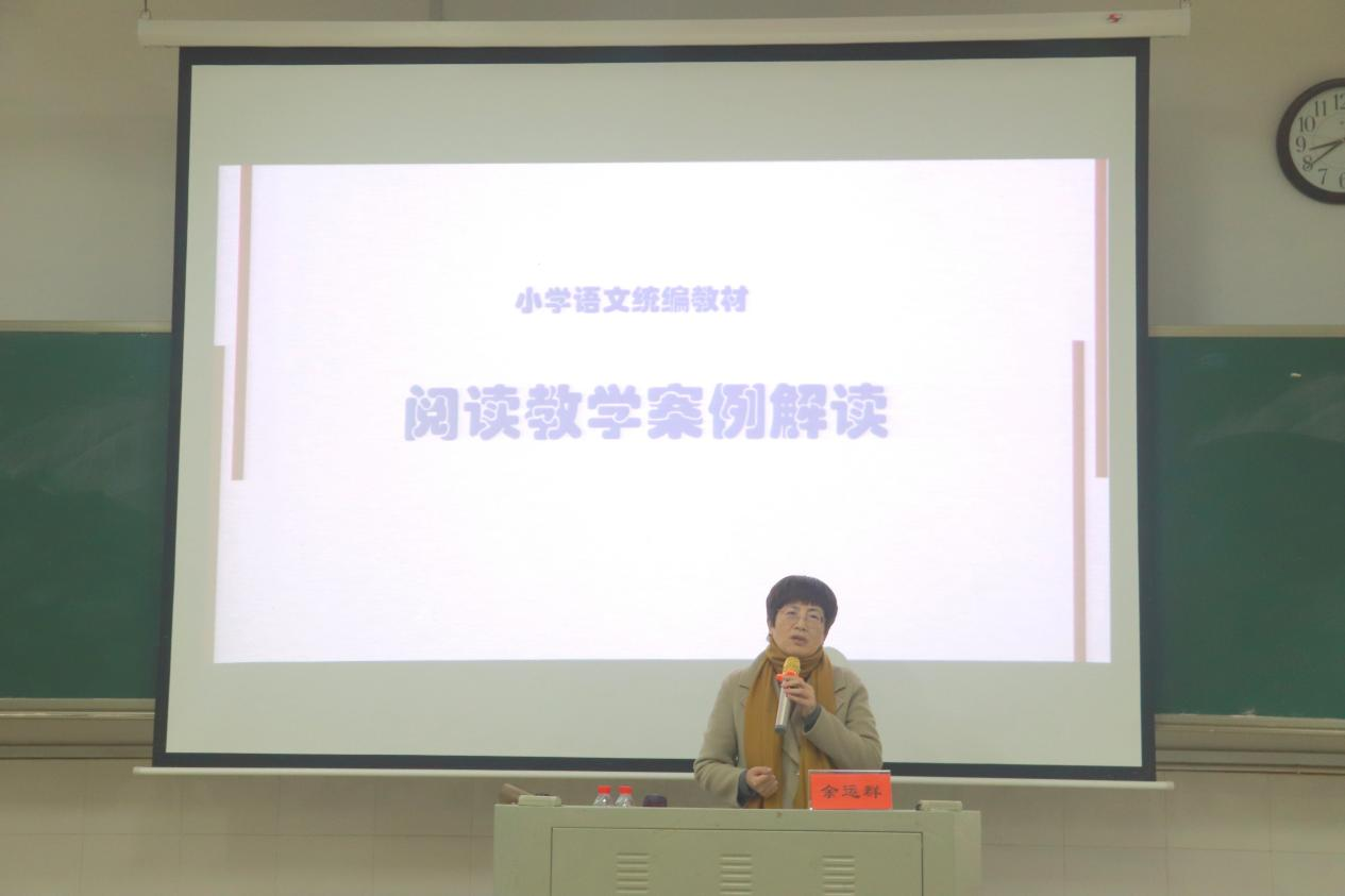 本报社(记者何小雨 摄影 郭翔宇)11月25日上午,“小学语文统编教材阅读教学案例解读”专题讲座先后在玉衡南101、201教室举行,主讲人为我校第一附属小学副校长余运群,讲座分别由文传院副院长王霞、罗燕主持,参会老师有张虹、喻亮、李希光等,文传院2019级六年制公费师范生参加了本次讲座。