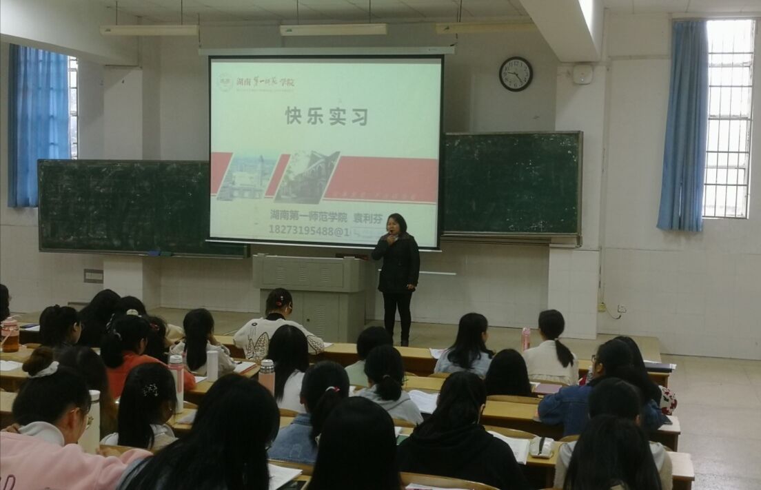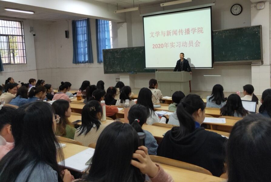 1026日,文传院2020年教育实习动员大会在玉衡南101教室召开。副院长葛春蕃博士、综合教研室袁利芬老师以及所有参加实习的2018级公费定向师范生参加了本次动员大会。