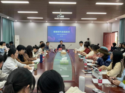随后,陈文锋书记就“如何成为一名新时代合格教师”这一主题,从“学生喜欢这样的老师”“合格教师必须具备的基本素质”“新时代教师应具备的十大素质”三个角度出发,向在座师生分享了自己的宝贵经验。同时,陈书记从教师品质、性格、态度、穿着等方面详细讲解了一名合格的教师所应具备的素养。他强调,成为一名合格的教师,我们应该坚守教育理念,做到真才实学,努力提高自己的专业素养,培养高尚的师德和良好的教育素养。