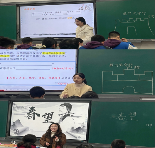 21汉语言文学3班彭熊宁、刘新凤、潘洁作为实习老师代表先后执教了《雁门太守行》(同课异构)和《春望》。汇报课结束后的评教会上,师大附中凌云中学朱艳林主任对我校实习生给予了充分的肯定,认为实习生们守住了师范生的“正”,体现了优秀教师的风范,期待未来与我院的长期合作。