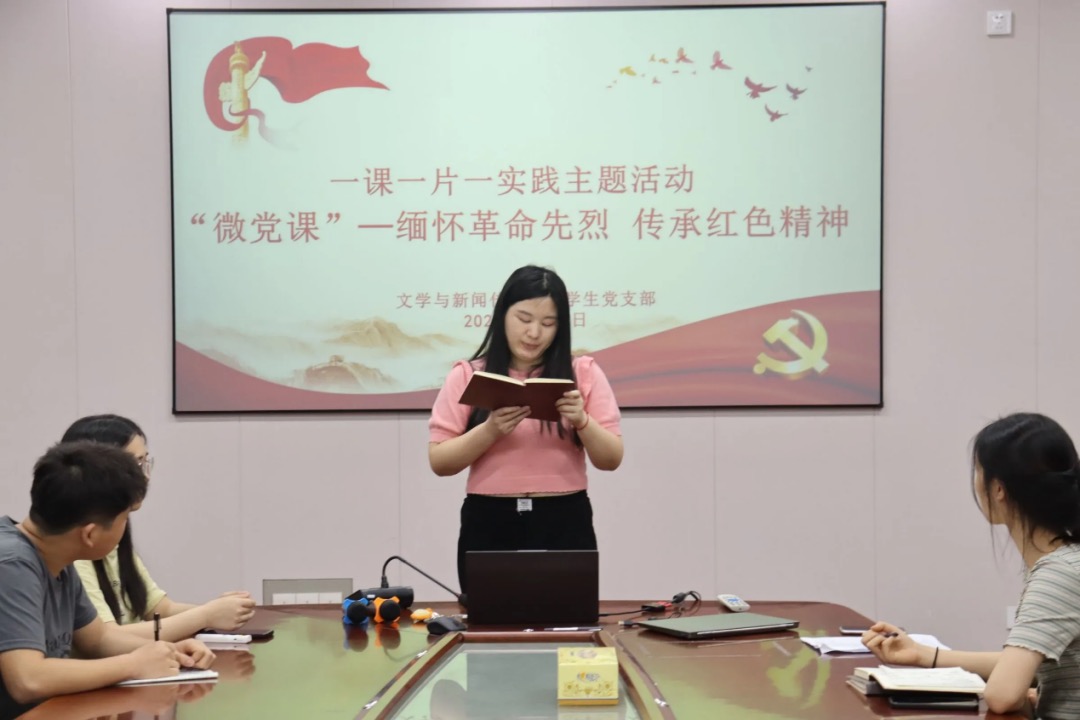 AV中文字幕在线观看学生党支部于4月18日中午在玉衡楼201研讨室开展了“缅怀革命先烈,传承红色精神”的主题微党课活动。本次活动由21中文班的彭靖主持,20级中文2班张欢主讲,学生第一党支部书记副书记陈滢琪,学生第二党支部书记安炜成、副书记刘晨晨以及全体在校学生党员参会。