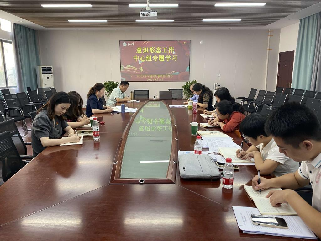 2022年9月19日上午,我院党委组织开展意识形态工作中心组专题学习。本次专题学习由学院党委陈天涯书记主持,院党委委员、班子成员、各党支部书记参加了本次学习。