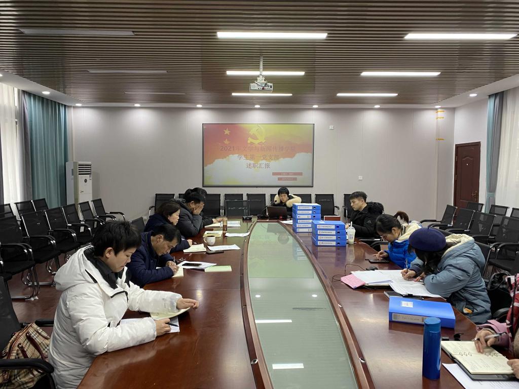 大会上学院五位党支部书记从2021年度支部“五化”建设工作执行情况、党建工作亮点、存在问题及其根源、下一步工作思路等方面进行了述职汇报。学院党政班子成员根据述职情况,结合各支部日常抓党建工作表现开展评议。随后学院党委按照党支部“五化”建设考核体系具体要求,对党支部工作台账进行了现场检查。