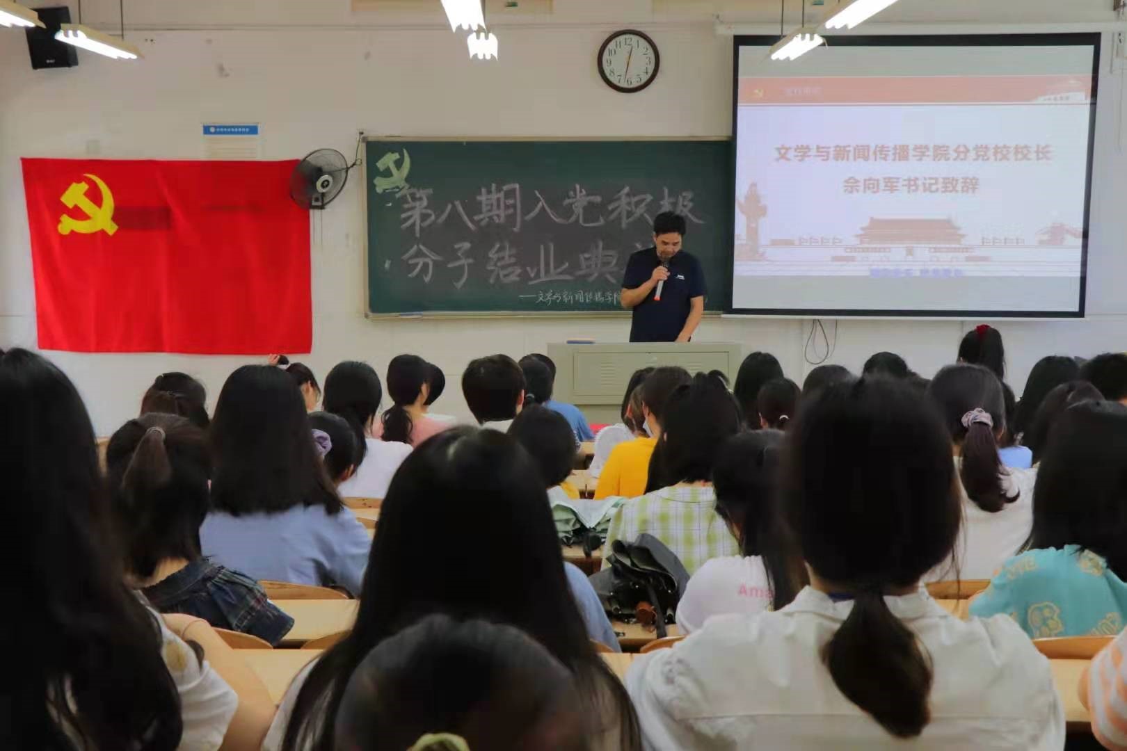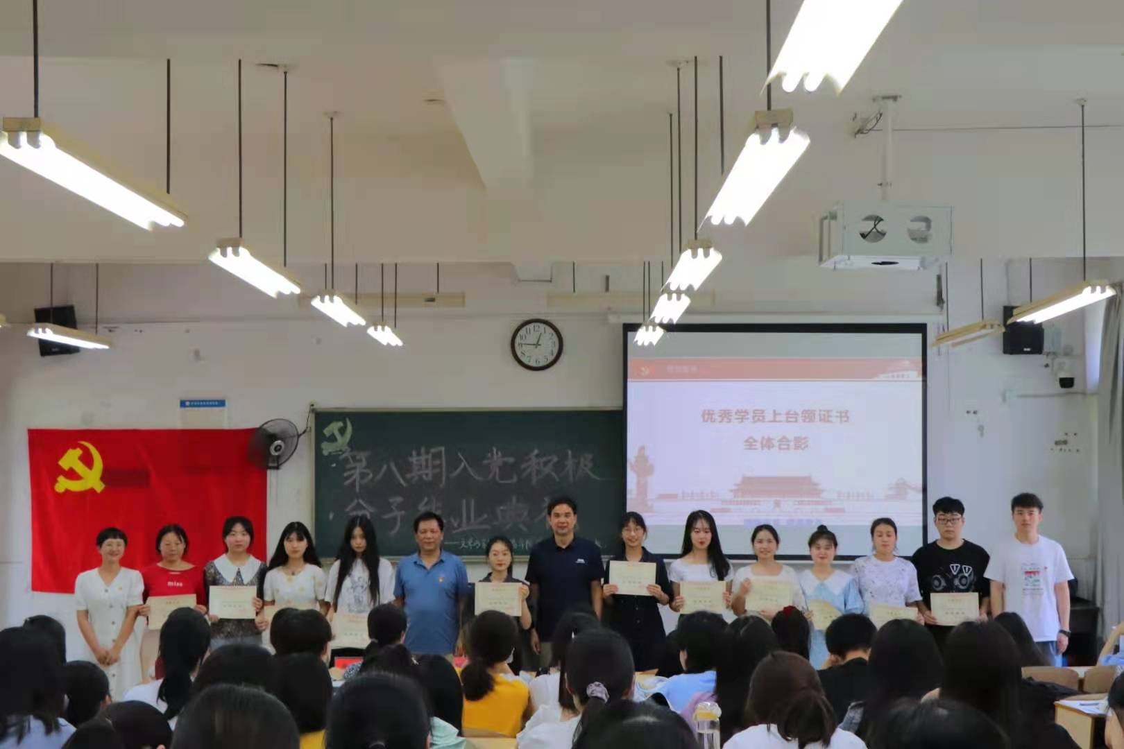 2021年6月7日中午12:30,我院分党校第八期入党积极分子培训结业典礼暨优秀学员颁奖典礼于玉衡楼206隆重举行。我院分党校校长佘向军、分党校副校长、党总支副书记欧阳范剑,我院学生党支部书记唐科、安炜成以及全体入党积极分子参加了此次典礼。