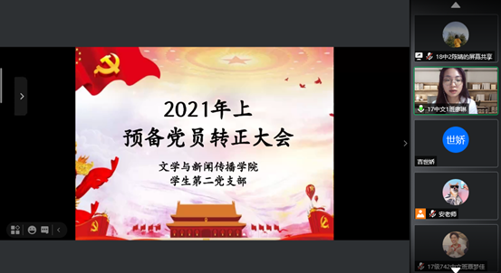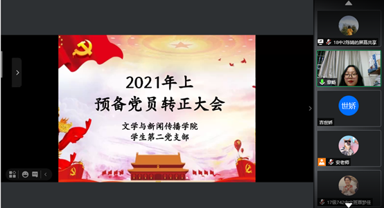 为进一步贯彻落实中国共产党在大学生队伍中高质量发展的方针和政策,壮大湖南第一师范学院AV中文字幕在线观看的学生党支部力量。2021年5月10日晚19:00,湖南第一师范学院AV中文字幕在线观看学生第二党支部在腾讯会议召开预备党员转正大会。