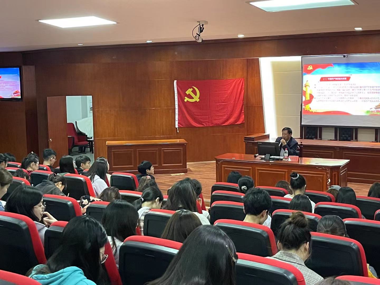 为提高党员队伍的理论知识水平和思想政治素质,形成我院浓厚的党史学习氛围。4月22日晚,我院分党校副校长、党总支副书记欧阳范剑在特立南112(模拟法庭)为我院第八期入党积极分子及在校学生党员讲授了“学史增信”的主题党课。