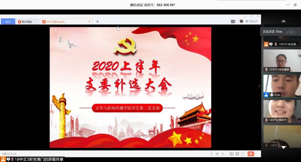 6月19日中午,我院学生第二党支部以线上会议的形式召开了2020上半年学生支委补选大会。本次会议由学生第二党支部书记安炜成老师主持,支部全体党员参加。