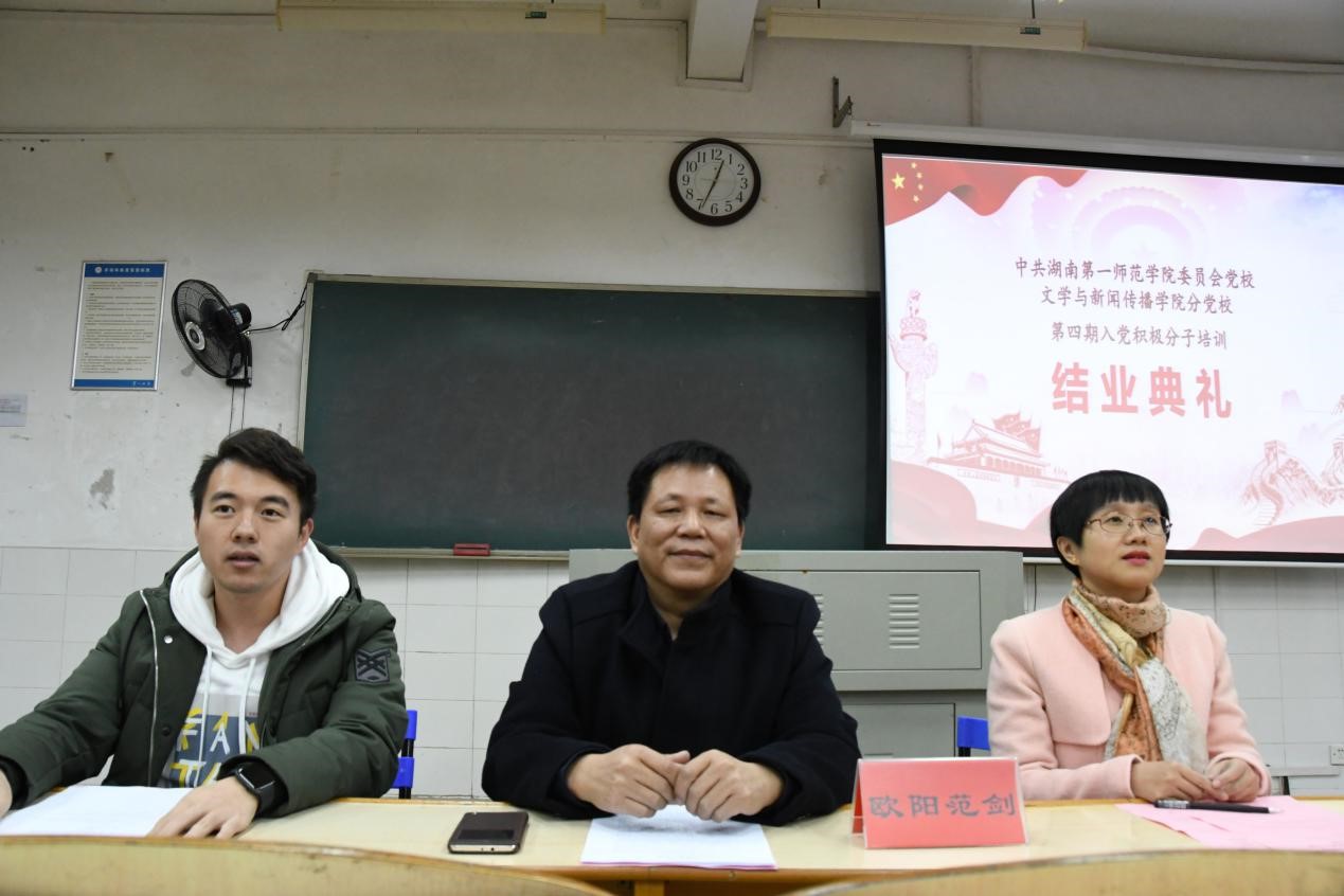 2019年11月27日中午12:30,我院分党校第四期入党积极分子培训结业典礼暨优秀学员颁奖典礼于玉衡楼206隆重举行,我院分党校副校长、党总支副书记欧阳范剑,我院学生党支部书记唐科、安炜成以及全体入党积极分子参加了此次典礼,典礼由欧阳范剑副书记主持。