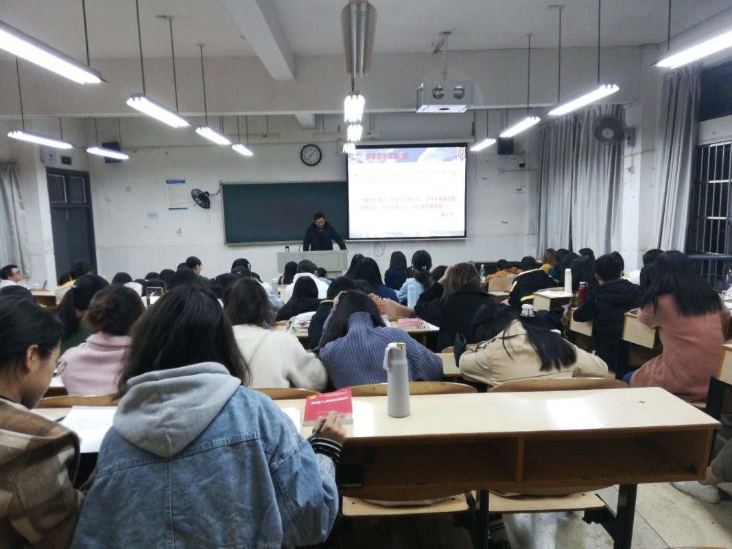 阮院长对党章进行了全面深入的解读,从党章的含义、地位、十九大党章的基本精神和主要修改内容、党章发展的历史进程等方面做了深刻的阐述分析,让党员、积极分子对党章有了更深层面的了解;其次,阮院长还指出大学生学习新党章的原因和如何学习新党章,旨在希望同学们能够熟记党章,把学习贯彻党章作为学习贯彻党的十九大精神的重要内容,不断向党组织靠拢。