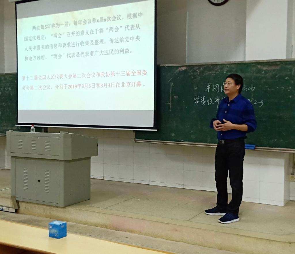 为落实我院学生党支部“三会一课”制度和“两学一做”学习教育常态化,促进学生党员和入党积极分子更加深入地学习两会内容,贯彻学习两会精神,我院学生党支部于2019年4月26日晚7点至8点于玉衡南101教室开展了“学习两会精神” 党课。此次党课由党总支部书记刘澍心教授主讲。