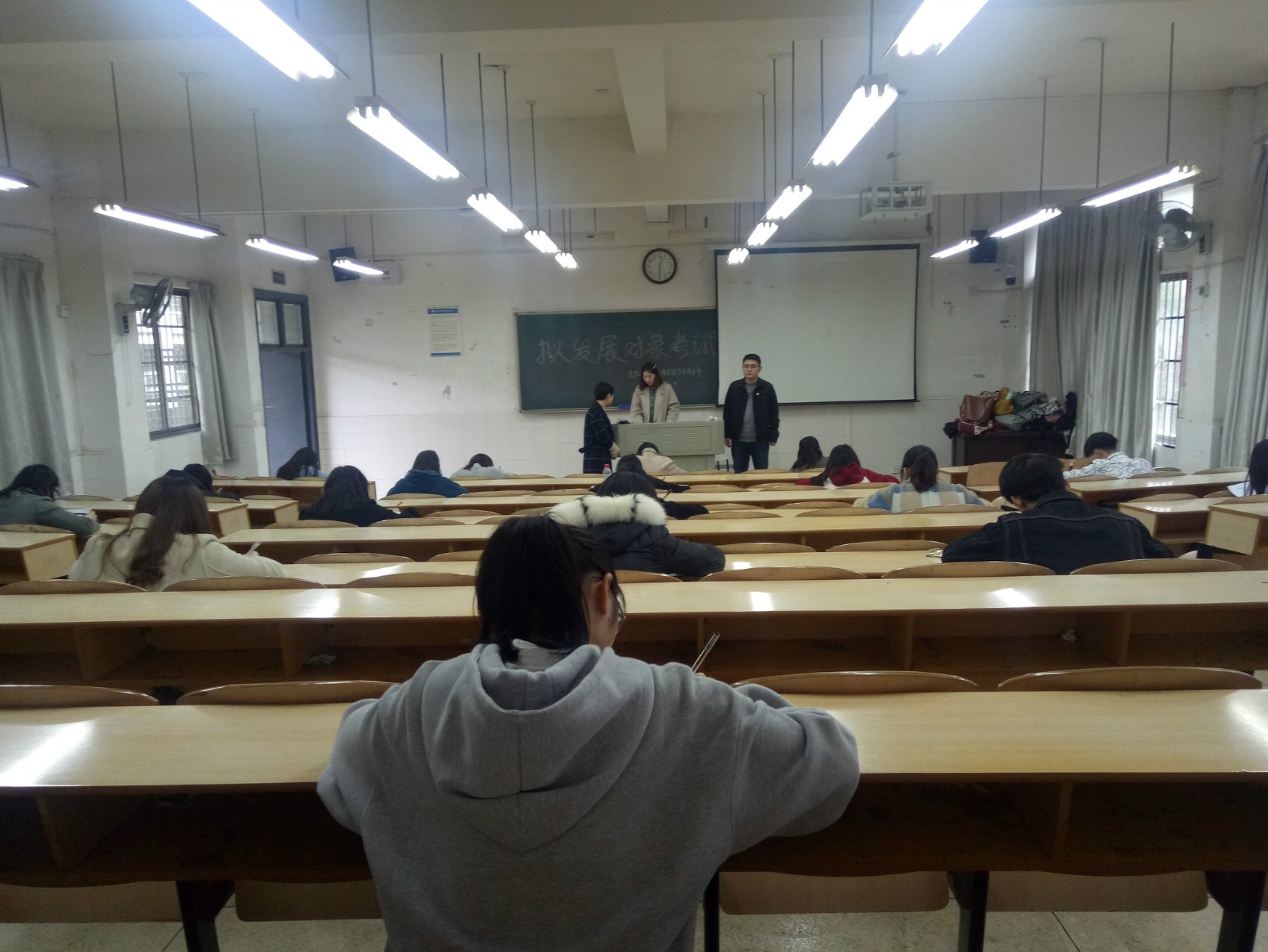为落实“控制数量、优化结构、提高质量、发挥作用”的要求,做好严格把关,做好新形势下发展党员工作,2019年4月3日中午我院在玉衡楼206举行党性知识考试, 24名拟发展对象参加了考试。学生党支部第一支部书记罗燕老师和第二支部书记闫伟老师监考。