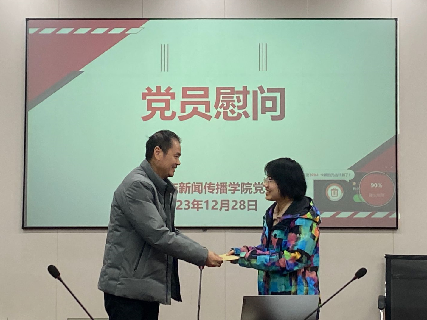 在元旦来临之际,2023年12月28日上午,学院党委书记何培森、院长龙永干等院领导班子成员受学校党委委托,代表组织向学院经济较困难党员谭永同志送去新年祝福及慰问金,表达党组织的关怀与温暖。
