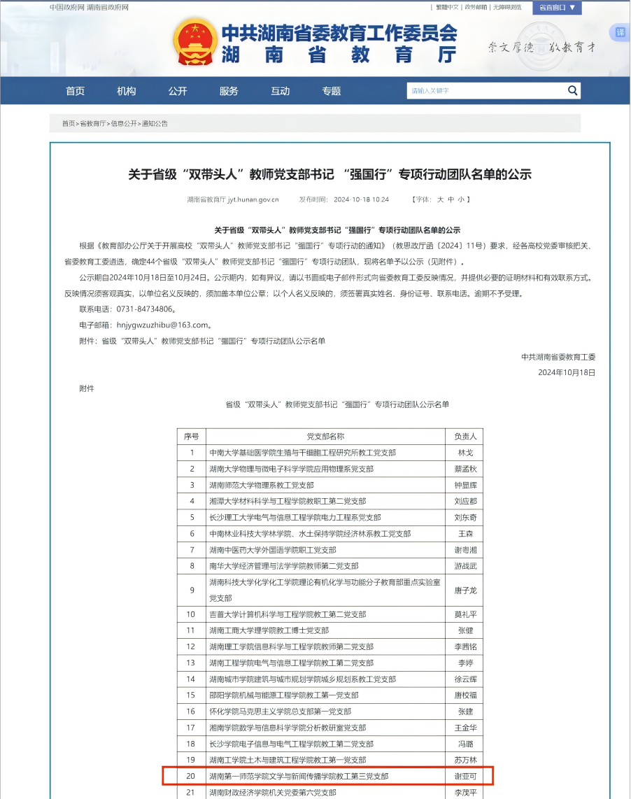 湖南省高校“双带头人”教师党支部书记“强国行”专项行动团队公示名单
