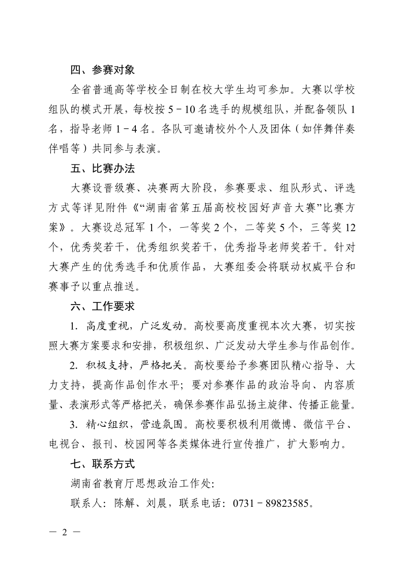 关于转发《关于组织开展“湖南省第五届高校校园好声音大赛”的通知》的通知