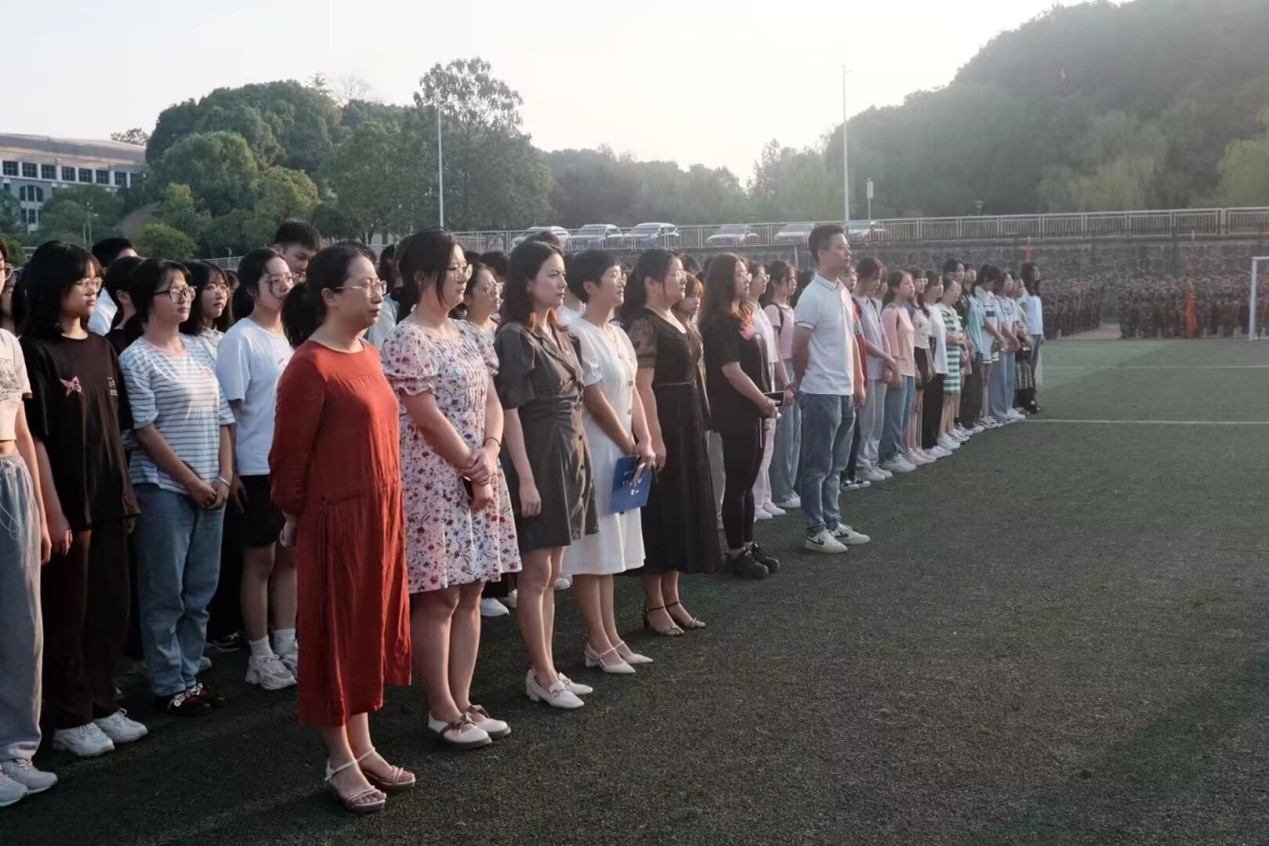 为喜迎党的二十大召开胜利召开,激励学生为实现中国梦而矢志奋斗、为建设“四个一师而锐意进取,9月19日,我院在东方红校区田径场隆重举行升旗仪式。院党委书记陈天涯、党委副书记欧阳范剑、副院长王霞、学校学工处公寓管理科科长旷怡、院教工党支部书记叶慧琼、全体辅导员以及全校3000余名新生参加升旗仪式。仪式由党委副书记欧阳范剑主持。