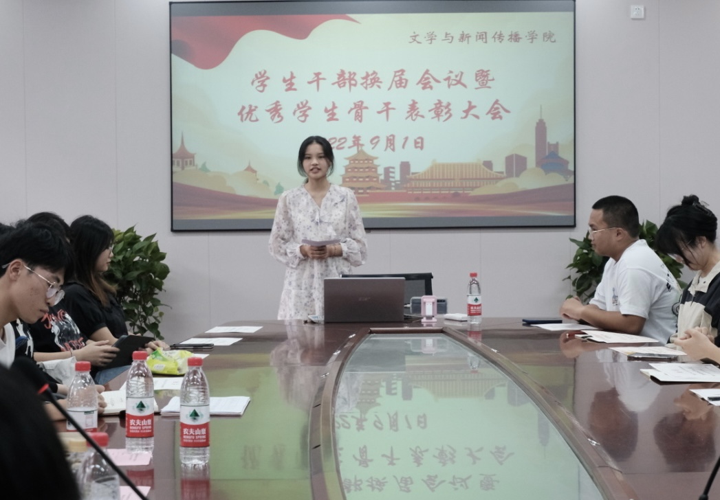 9月1日,我院学生干部换届会议暨优秀学生骨干表彰大会在玉衡楼201召开,党委副书记欧阳范剑、学工办主任唐科以及全体辅导员参加会议。