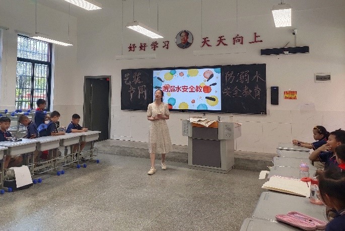 三下乡正值暑期,暑期来临,青少年涉水游泳等行为日益增多,溺水事故进入高发期。为协助当地教育部门及学校做好青少年防溺水安全工作,湖南第一师范学院AV中文字幕在线观看“三下乡”实践团于7月3日在韶山市芙蓉学校开展防溺水教育宣讲,分四个班进行,共有84名小学生聆听宣讲,在授课宣讲过程中,授课组教师制作了精美的PPT动画,为孩子们生动直观的展示了溺水给家庭带来的无限伤痛,告诉孩子们应该原理危险水域,同时还通过现场演示的直观方式教会了孩子们如何在遇到危险时进行自救;与此同时,团队成员还分批次在学校周围乡镇进行了“炎炎夏日,谨防溺水”专题宣传活动,通过发放问卷、讲述小故事等村民们感兴趣的方式宣传防溺水知识,共有百余位村民参与其中,宣传效果好,成效棒。