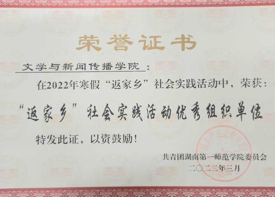 我院在2022年寒假“返家乡”社会实践活动中荣获优秀组织奖,全校仅3个学院获此殊荣,我院名列其中,特此向全院师生报喜!