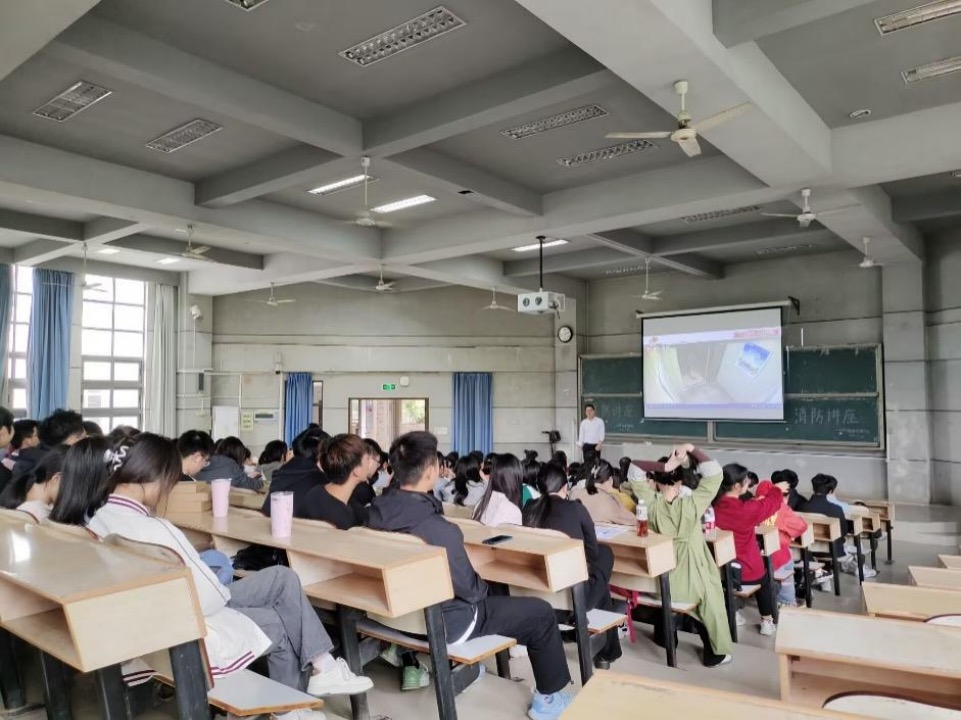 讲座中周琪教官详细讲解学校寝室高层火灾的预防、救助以及逃生方法,深入剖析火灾发生的原因,用身边真实发生的案例告诉大家不要抱有侥幸心理,麻痹大意,要时刻注意日常生活中存在的安全隐患,让大家从内心深处牢固树立防火防灾的意识。