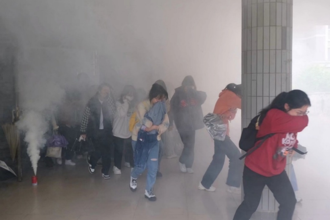 活动氛围中专题讲座与应急疏散演练两个部分,特邀康安消防安全服务中心周琪教官作为主讲,学院党委李豪杰副书记、学工办全体辅导员及150名学生代表参与本次活动。