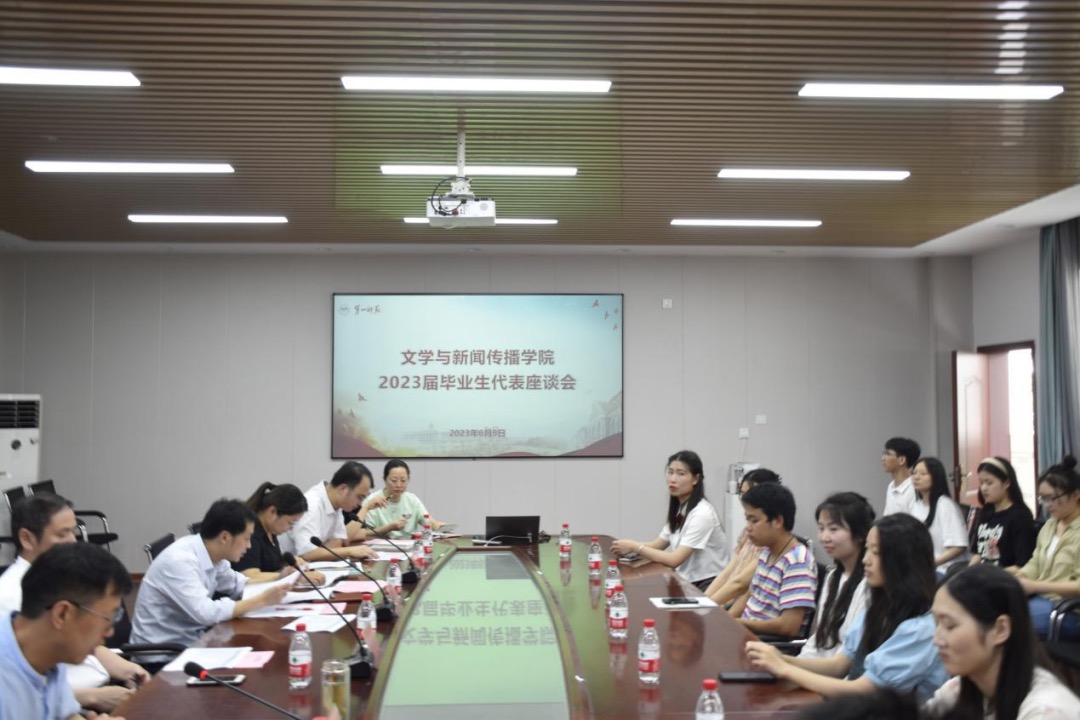 6月9日下午,AV中文字幕在线观看2023届毕业生代表座谈会在玉衡楼201召开。院党委书记何培森、院长龙永干、副院长王霞、系主任杨水远、王正、党政办主任刘洁莹、学工办主任唐科、教科办主任谌鸽、就业专干曾志远、辅导员安炜成、罗西等老师以及26名学生代表参加了会议。会议由院党委副书记李豪杰主持。