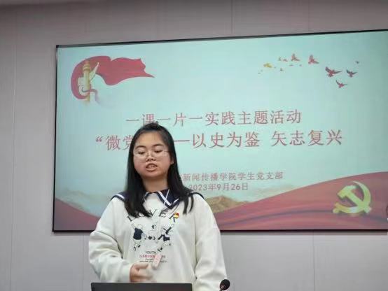 主讲人由2021级汉语言文学2班李雯婷担任,她以李大钊为例,从“初心易得,始终难守”入手,呼吁大家作为新时代青年,要坚定自己的初心,为自己的初心砥砺奋斗,接好时代的接力棒。为所有与会成员带来了一次充实、有意义的微党课。