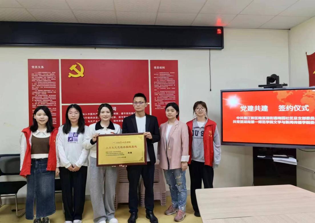 为弘扬志愿服务精神,扎实推动实践育人,4月18日,我院与长沙市岳麓区梅溪湖街道梅园社区签订合作协议,共建大学生志愿服务实践基地,打造实践育人共同体。院团委书记熊薇、梅园社区居委会副书记朱立志、院青年志愿者协会负责人等出席签约仪式。