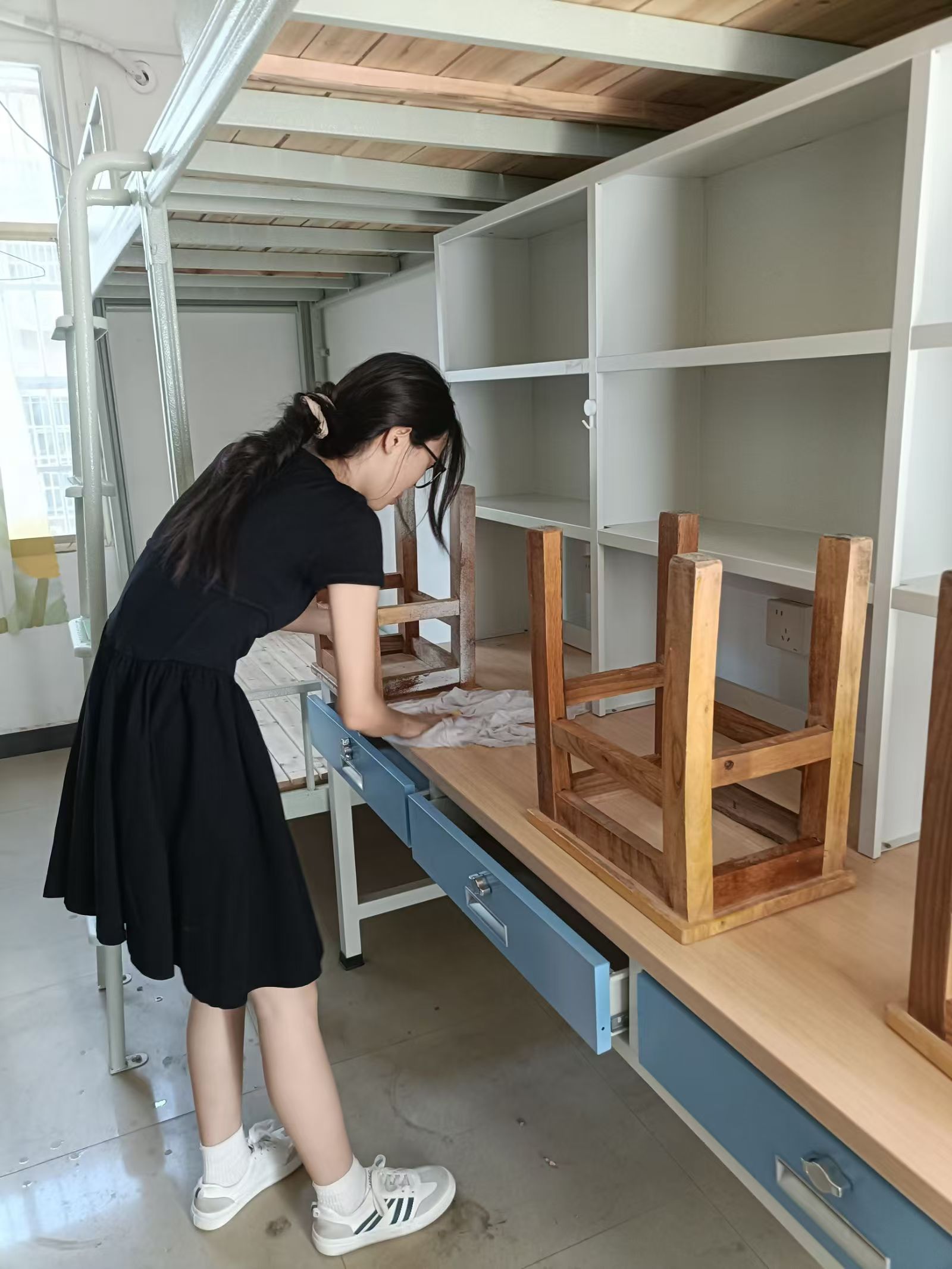 9月3日下午,全体新生朋辈辅导员及30余名志愿者奔赴城南书院校区,深入宿舍楼开展宿舍卫生清洁志愿服务活动。清扫、排查、记录,从擦拭门窗到清洁桌椅,从清扫地面到整理床铺,每一处细节都饱含着学长学姐对新同学的热情与期待。