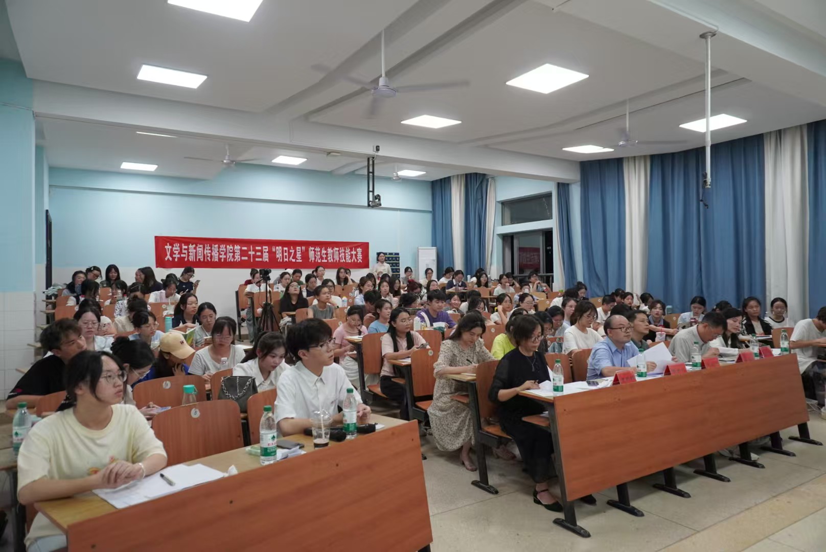 为提升师范生专业素养、培养学生核心竞争力,进一步强化学院人才培养质量,历经班级初赛、学院复赛,我院第二十三届“明日之星”师范生教师技能大赛决赛于9月29日晚在怀中南401教室落下帷幕。12位选手脱颖而出进入决赛,决赛由院长龙永干,党委副书记李豪杰、副院长杨水远,综合教研室主任张虹、小学语文教学论团队周杨林老师担任评委,2022-2023级100余名师范专业学生现场观摩学习。