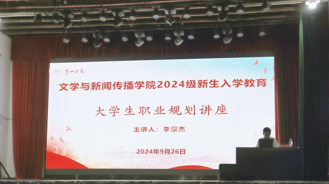 为帮助2024级新生进行职业生涯探索,使学生了解当前就业形势,明确未来发展方向,9月26日晚,我院在城南书院校区大礼堂召开大学生职业规划讲座。讲座由我院党委副书记李豪杰主讲,2024级全体新生参加。