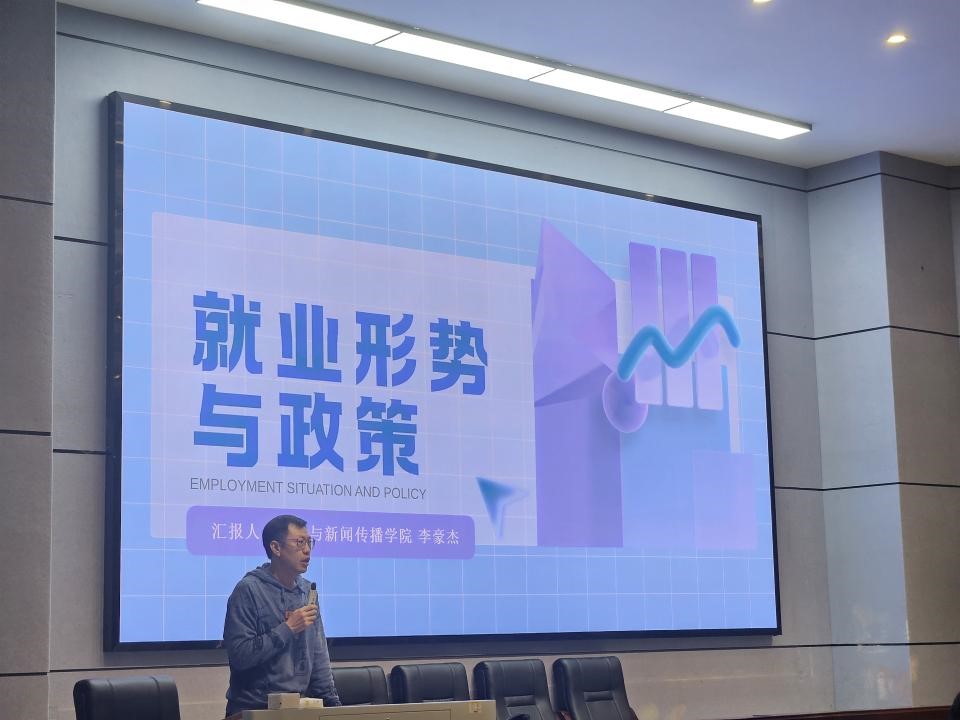李豪杰结合近七年高校毕业生就业人数为学生解读就业大局。数据表明,毕业生规模持续扩大,岗位增速却有所放缓,在此情形下,我院高度重视人才培养质量的提升。李豪杰强调,我院学生应立足学院优势与专业特色,审慎思考未来职业规划之路,以便更好地应对就业挑战。